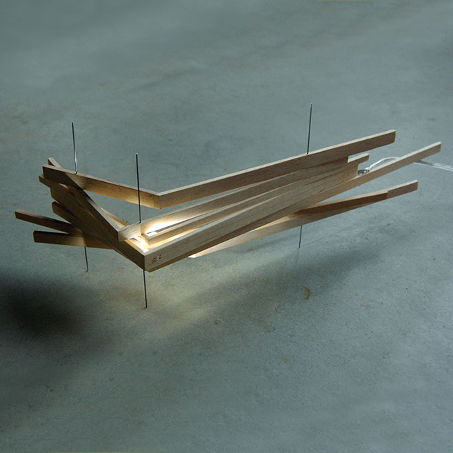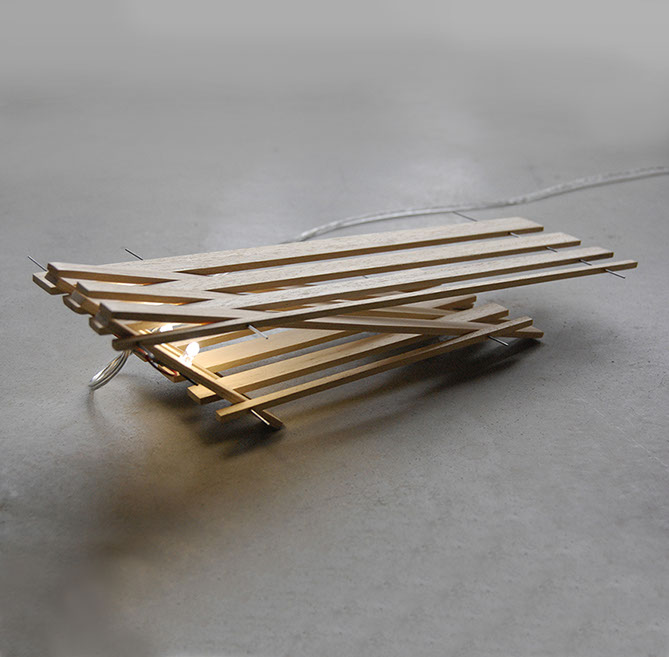 Bois, tissu et led, Dimensions : L 37 x H 14 cm