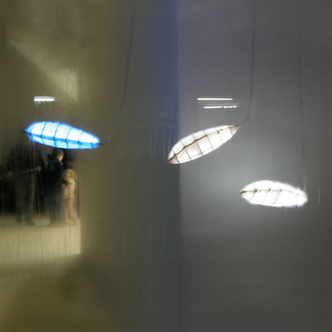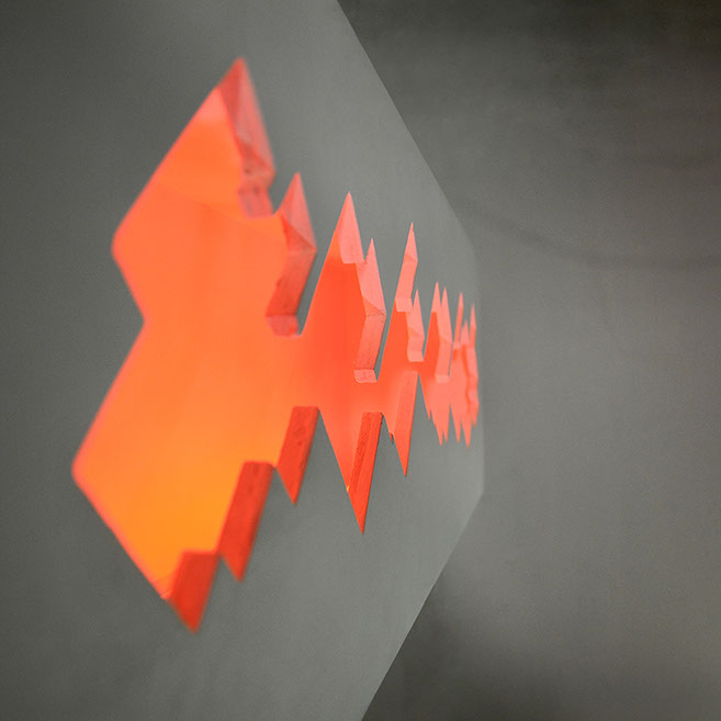 Bois peint et leds, Dimensions : V1 100 x 26 cm / V2 65 x 26 cm